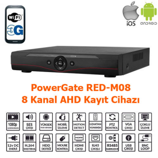 PowerGate RED-M08 8K 1080P 3g Ahd Ip Hibrit Dvr